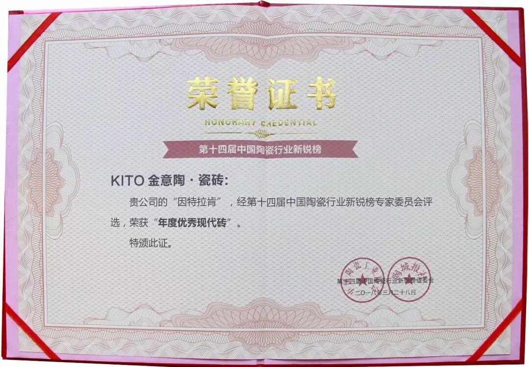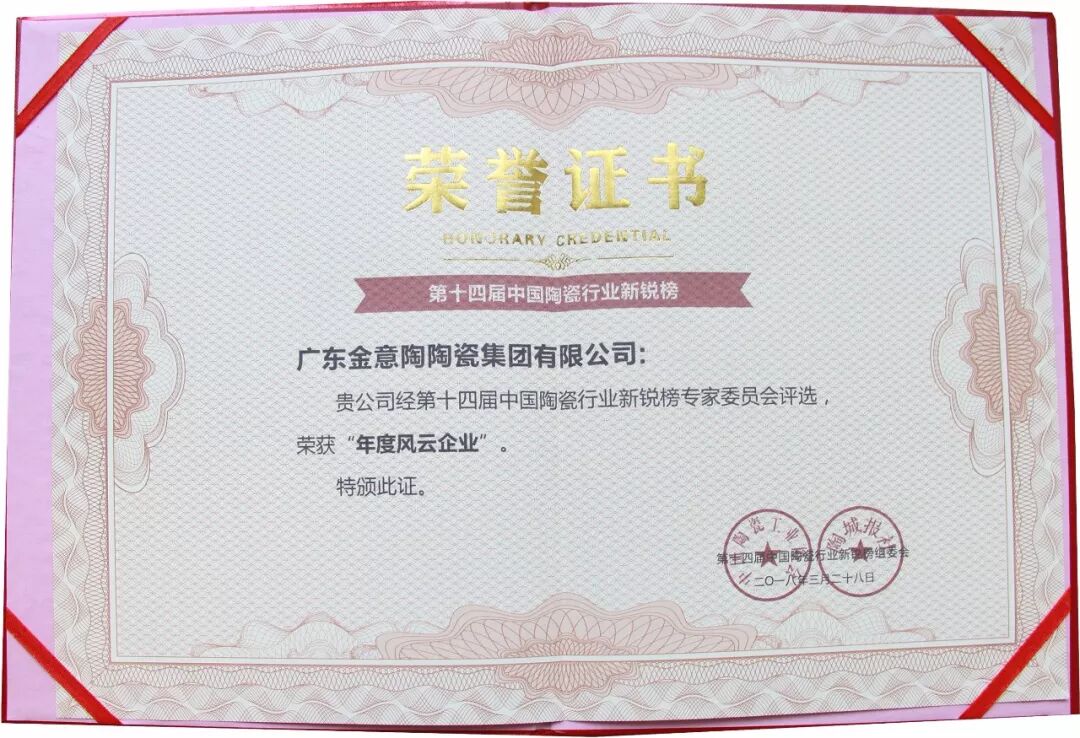 2017年5月18日中国建筑卫生陶瓷协会现代仿古砖研究中心和中国建筑工业协会现代仿古研究所同时落户金意陶,开启了陶瓷行业现代仿古砖的风向企业,带动行业现代仿古砖的发展和集中爆发。6月金意陶以112.38亿元七度荣登中国500最具价值品牌榜。2018年金意陶再次强势开局,新的一年必将为行业的前行打开一条新通路。