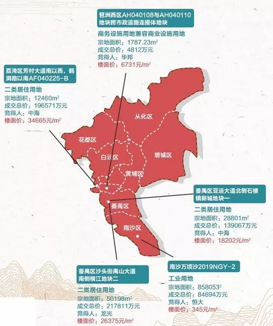 在4月1日的广州土拍上,番禺沙头街禺山大道地块二,由龙光以217811万元获得,楼面地价折合后突破了2.6万元/平米。广钢新城出让的第18块地,为广州史上最高起拍价地块,最终被中海竞得,共付出196571万元,楼面价34665元/平米。番禺紧邻亚运城的石楼新城地块,最终成交价达到139067万元,折合楼面价18202元/平米。