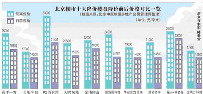 记者了解到,北京中原市场研究部抽取了近期北京降价比较明显的10个楼盘作为样本,其中包括远洋一方、京贸国际城、华业东方玫瑰、顺驰领海等知名降价项目。