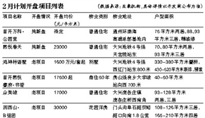 每年春节前后都是楼市的传统淡季。根据亚豪机构统计显示,今年2月份,预计北京仅有6个项目开盘,在历年的春节淡季中,入市项目也数量偏少。而记者采访发现,这些项目的负责人多表示开盘时间未定,未必能在2月内入市。房企拿地热情的高涨,与推盘热情的冷淡,在年初形成了鲜明对比。