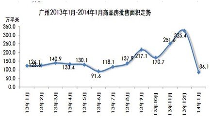 2014年1月广州供应土地13宗,用地面积共34.73万平米(包括从化、增城二市)环比大幅下降,降幅62%;其中住宅用地出让8宗,出让面积22.71万平米;出让商业用地1宗,出让面积1.78万平米;出让工业用地3宗,出让面积6.81万平米;其他用地出让1宗,出让面积3.44万平米。