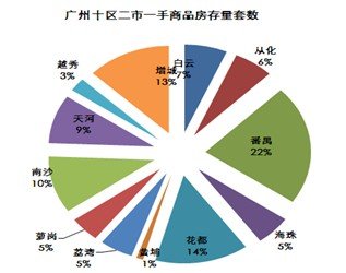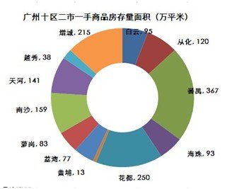 从以上图表可以看出,全市一手商品房按2013年7-12月的平均销售速度来计算的话,存量套数及存量面积分别需要16个月、20个月的时间才能销完,存量套数环比上升1%,存量面积环比上升1%,受限签政策影响,中心区存量有所上升,萝岗和增城供货紧张。