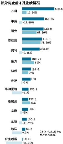上半场哨声即将吹响,房企业绩的表现却不尽如人意。根据记者不完全统计,截至目前,共有34家房企披露了2014年前4个月的销售数据,累计签约数据为4282.99亿元,较之去年同期,涨幅仅为4.8%,据机构统计数据显示,这是楼市发展多年来的同期最低涨幅。 超半数企业同比下降 尽管对于全年楼市的走势,大多数业内人士都表示“看不清”,但企业分化加剧、无法超越去年,却成为越来越清晰的行业标签。从已披露业绩数据的34家企业中,包括中海、保利、世茂、远洋等企业在内,有20家出现了业绩同比下滑的现象,其中合生跌幅最高,突破六成;而首开股份[1.18% 资金 研报]、瑞安房地产、恒盛地产的业绩降幅也超过了50%。 从前4月的销售总额看,万科仍稳坐头把交椅,销售总额达669.6亿,同比去年前4月涨19.6%。中海地产紧随其后,达455.65亿,恒大为443.9亿,碧桂园为410.5亿。目前仅此四家房企前4月销售额超过400亿。 备受关注的“千亿军团”在前4个月表现各异,除中海、保利同比下滑外,以万科为首的龙头房企均收获了不同增幅。其中碧桂园前4月销售达410.5亿,同比2013年前4月大幅上涨78.1%,根据1280亿元的年度业绩目标来算,碧桂园已完成年度目标的32%。恒大前4个月合计销售高达443.9亿元,同比大增61.6%,已完成年内销售目标近40%。 某业内资深人士指出,虽然标杆房企多数呈现增长,但幅度趋缓已是不争的事实。在部分千亿房企都上涨乏力的环境里,对于中小房企而言,未来或将更加举步维艰。 未来压力将持续增大 近期部分城市接连传出楼市松绑,并未让企业感受到太多暖意。“购房人的心理在目前已经出现明显的变化,而预期对于房地产市场太重要了。”一位不便于透露姓名的房企人士向记者表示,一季度的业绩不振,对于后期的销售业绩压力也将倍增。 “截至目前,销售同比上涨的企业中,部分是因为2013年的高额结转,而随着销售结转的逐渐减少,也将会影响到销售数字的表现。”另一位市场分析人士也表示,目前房企融资压力巨大,虽然有地方政府救市的可能性,但如果信贷政策没有明显宽松的迹象,市场也很难乐观。 根据国家统计局数据,2014年1-4月份,全国房地产开发投资22322亿元,同比增长16.4%,增速比1-3月份回落0.4个百分点。业内人士分析指出,当前房地产行业的数据并未出现好转,楼市下行的压力依然明显。 另据某知名券商分析师表示,今年一季度应该是众多房企最佳的销售窗口期,很多企业还是实现了较高的销售额度。但他同时对未来市场则持看淡态度,并称想要在后期“补涨”估计很艰难。 企业拿地积极性明显减弱 统计显示,销售20强的标杆房企,截至5月10日,年内拿地额度共计1318.7亿元,而在2013年全年则达到了5600亿元。且最近几个月来,拿地数量逐月递减。 从2014年前4月土地市场情况来看,标杆房企明显出现谨慎态度,连续四月减少拿地额度,其中一月达到了单月高点,600.99亿,随后连续多月下调,2月拿地额为325.62亿,3月萎缩到254.54亿,4月更是下调到133亿,与去年同期的291亿元相比,下滑了54.3%。记者了解到,包括世茂、富力、雅居乐等多家房企在内,已经连续两个月未现身土地市场出手。 数据显示,按申银万国行业分类,126家上市房企2014年第一季度归属母公司股东的净利润106.23亿元,较去年同期的113.45亿元下滑6.36%。在“招保万金”四巨头中,除保利一季度净利还维持增长外,其他三家均现下降,特别是万科,出现了13年以来罕见的净利倒退,同比下降5.23%。除万科外,招商地产[1.94% 资金 研报]净利下降6.82%,金地集团[1.32% 资金 研报]下滑73.65%。 “销售、利润的双双下滑,以及目前市场供需格局的变化,都让企业在拿地时倍加小心。另外,部分标杆房企在2013年已经提前完成土地储备目标,也是今年以来房企拿地积极性减弱的重要原因。”某资深业内人士同时表示,但是对于核心城市的优质地块,仍会出现积极拼抢的情况。