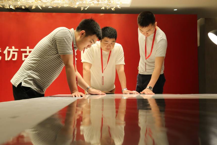 ▲金意陶质感PLUS大板全新发布 今年4月的陶博会上仿古砖以22.5%的展示量冠绝所有产品品类,现代仿古更是成为行业的最受热捧的产品,现代仿古砖进入了发展的快车道。与会嘉宾叶向阳、尹虹、罗青等嘉宾分别谈了对现代仿古砖的看法,在不同程度上表达了“现代仿古砖是行业发展主流”的观点。