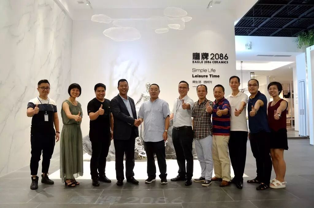 在签约进行前,中吉号董事长杨世华先生一行在林伟总裁的陪同下,参观了鹰牌集团。杨董事长表示,“鹰牌有着四十多年的发展史,是一个值得骄傲的历史,它引领陶瓷和世界对话,这种胸怀,格局和担当,是值得尊敬,让人震撼的。其中鹰牌的2086,是现代仿古砖品牌,是新生代的品牌,适应了正在崛起的中层阶级的需求,代表着未来。”