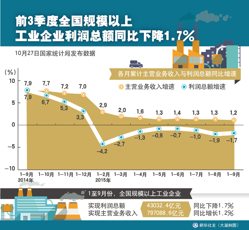 前9月规模工业企业利润43032.4亿元同比降1.7%