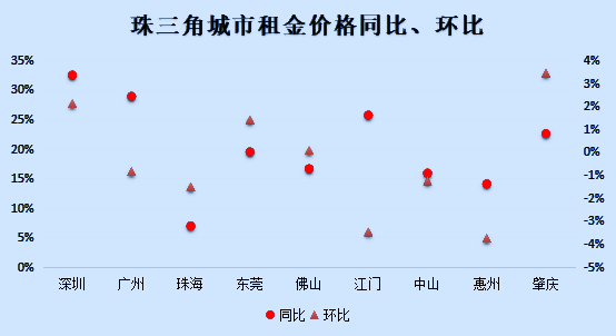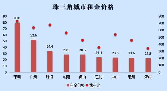 8月,广东大湾区城市住宅租金价格均超20元/平米/月,深圳约80元/平米/月最高,其次是广州52.6元/平米/月;深圳、广州、江门、肇庆租金价格同比涨幅超20%,4市环比上涨;售租比均超300:1。