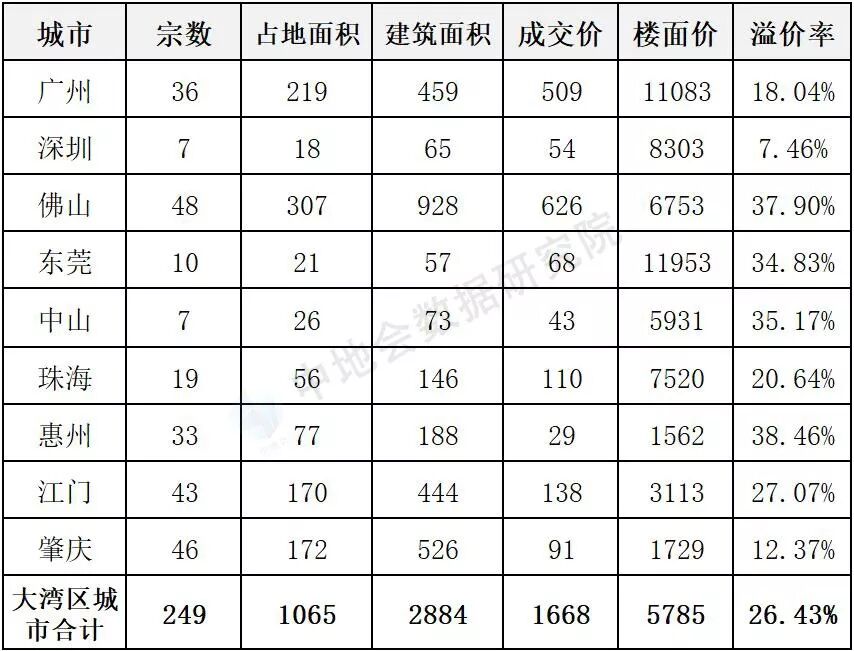 大湾区城市住宅用地平均溢价24%